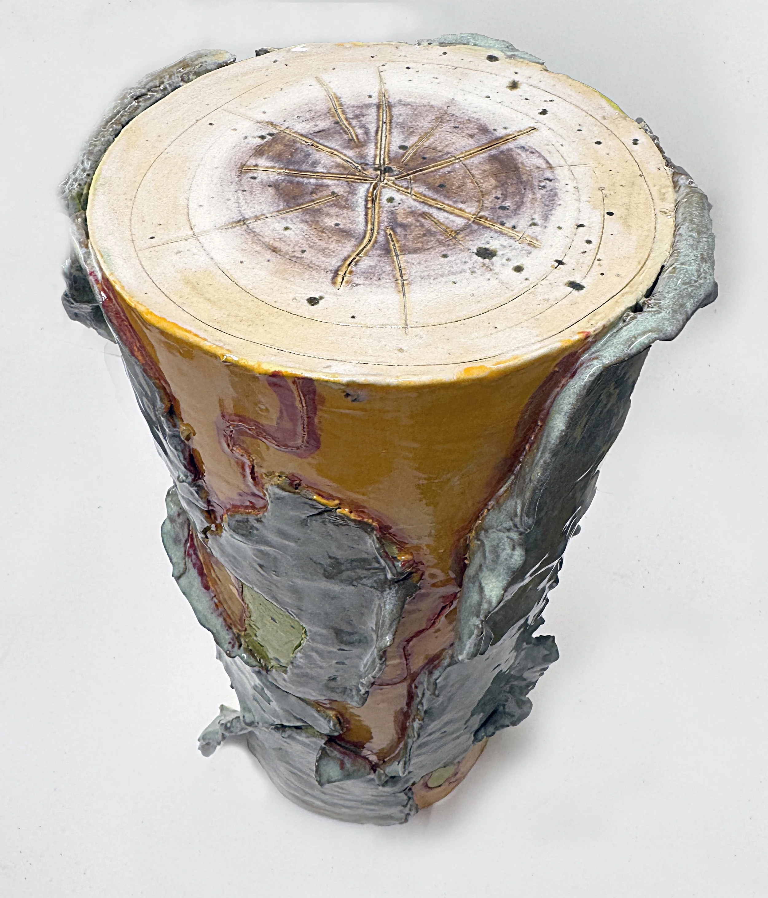 Foam Tree III (top view), 2023. 8 1/2" tall x 2 3/4" w x 8" deep. Stoneware.